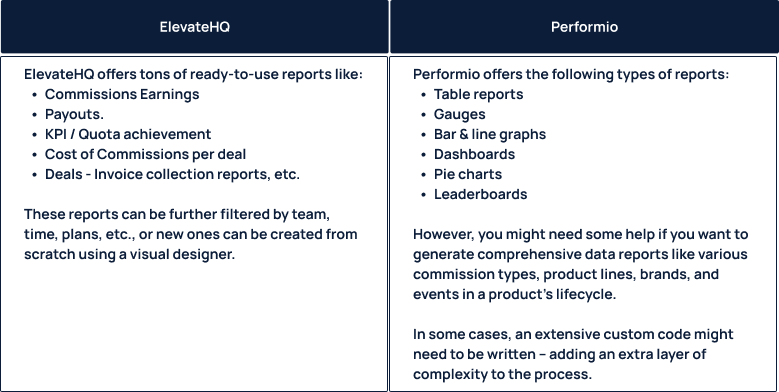 The table below briefly compares some of the critical functionalities of ElevateHQ and Performio.