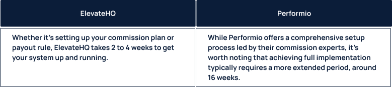 While both ElevateHQ and Performio recognize the significance of this phase, here’s how their setup time differs:
