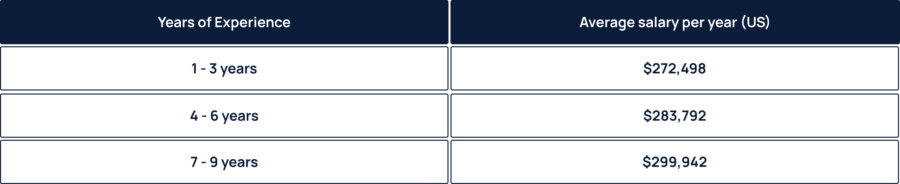 Here’s a list of average salaries per year based on the years of experience of a VP: